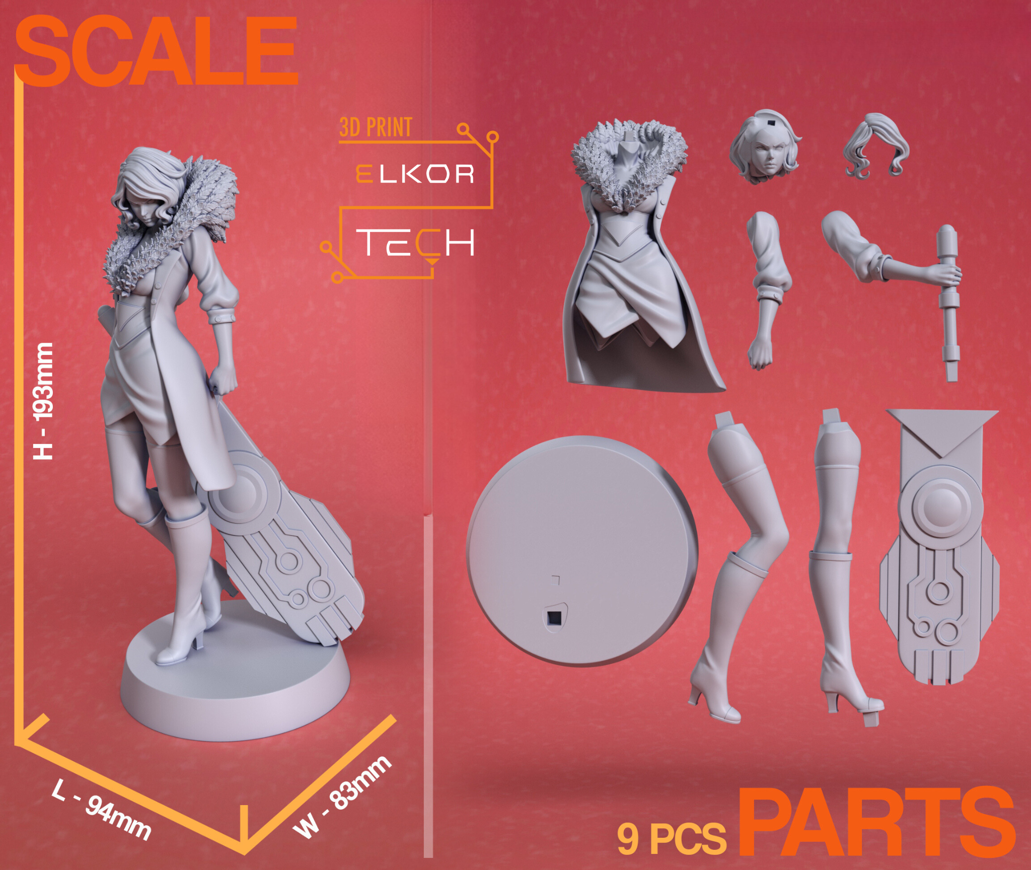 - Montaż: Figurka standardowo wysyłana jest w częściach do samodzielnego montażu, lecz istnieje możliwość zlecenia złożenia i sklejenia.